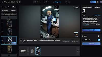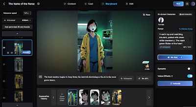 There was certainly a learning curve here. It costs credits to try to tweak a scene or fix "mistakes," and sometimes it just gets more screwed up. The AI will not hesitate to decapitate or amputate a character in an overzealous attempt to follow your instructions if you fail to be ridiculously specific, and even then, it's a gamble. If you regenerate a scene, you may end up with different characters. Or a different genre altogether (all of a sudden horror, vampire, photorealistic...)