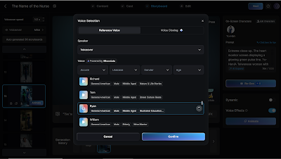 Tinkering with the scenes as well as the captions that will be read out loud in the film will take some time. You can select the voiceover voice that will read the captions. Once you select a voice, it stays consistent throughout the film.