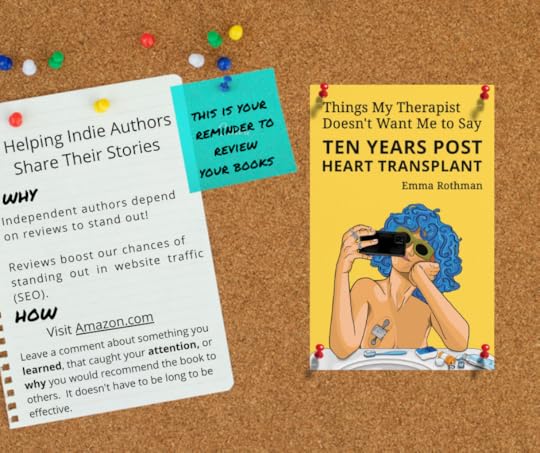 "I have followed Emma's journey as she was researching and writing this book. It's amazing to see the finished product and how much of an impact it already is having." "Emma nails it with this quote: [insert a quote from the book that you found exciting or impactful]. Worth a read. " "Emma's transplant journey really drew me in because it was so honest, raw, and thoughtful. She didn't hold back explaining how she felt going through everything."These are just a few examples of ways to leave reviews, feel free to use them as inspiration When you write a review, please let me know in the comments or send me a note through my website!
