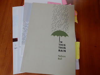 The one on top, In This Thin Rain (apt for this quietly raining day here in BC) accounts for the happenstance of my meeting him. I wrote a review of it for a now-defunct online magazine and somehow Nelson tracked me down so he could say thank you. Not an experience a reviewer often has!