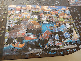 For me, that's an accomplishment, albeit a somewhat meaningless one, as the puzzle will soon be going back into pieces and into the lovely box it came in. But really, with an image of Peggy's Cove, it stirred quite a few good memories along the way.