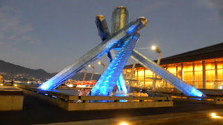 But it wasn't just football filling the screen, the Winter Olympics are taking up space as well. Because this month's posts are partly a look back, it wasn't all that long ago the games were in Vancouver. The cauldron is still downtown, looking over Burrard Inlet and the North Shore, and as you can see, still looks quite beautiful.