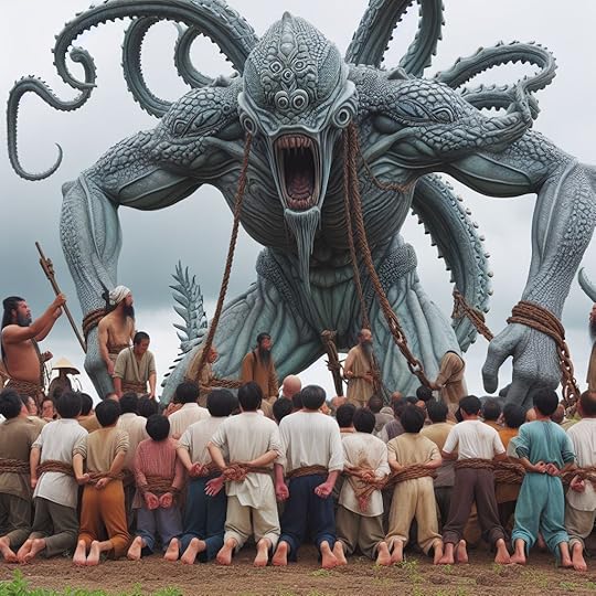 The men were forced to build many temples and other places of worship to the extraterrestrials. The days were long and hard. There was no joy or love in the world.
