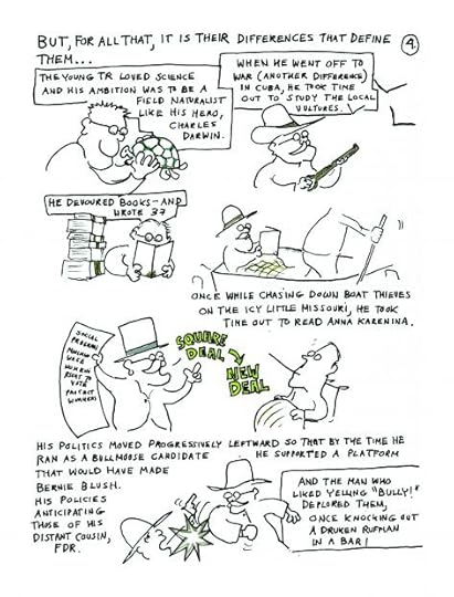But if witnessing a physical confrontation might be fun, a mental and verbal battle would be even better. The great thinker and speaker, the author of all those books, whose mind ranges throughout history and whose photographic memory can conjure up full pages of the books he reads, debating the non-reader, the non-speaker, the non-thinker. The match would be competitive only in terms of raw belligerence and self-confidence, but unequal in all other ways. Particularly since TR was most eloquent when spurred to outrage and since nothing drove him to outrage like the rising tide of commercialism and crassness that was flooding the America he loved. He hated nothing more than “the wealthy criminal class” and “predatory wealth.”