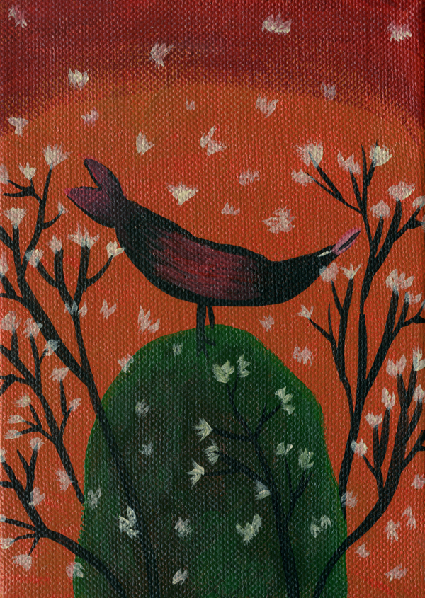 um dos meus trabalhos (de três) para a colectiva Arte Móvel que inaugura esta sexta, 9 de dezembro no espaço joão pedro rodrigues, rua nossa senhora de fátima, porto (ao lado do labhirinto). acrílico sobre tela, 13x18cm. é pequeno, caramba! QUADROS E ESCULTURAS DE BOLSO O projecto "Arte Móvel 2011" vai de encontro à ideia que originou a Exposição "Arte Móvel sobre T-shirts" - Colectiva apresentada nesta Galeria no verão de 2010 – revendo-se por isso com o mesmo intuito de estimular a criação e produção de obras de arte passíveis de se transportar.Para fechar o ano de 2011, o Espaço João Pedro Rodrigues lançou o repto a mais de trinta artistas de diversas áreas criativas, para desenvolverem trabalhos originais que se enquadrassem em duas grandes vertentes: Quadros de Bolso e Esculturas de Bolso .Para a mostra dos Quadros de Bolso, contámos com o patrocínio da Papelaria Sousa Ribeiro, a qual disponibilizou três telas por artista (formato 13x18cm). Aos artistas convidados foi lançado ainda o desafio de criação de obras tridimensionais dando origem à mostra paralela de Esculturas de Bolso, de suportes e técnicas de intervenção livres.