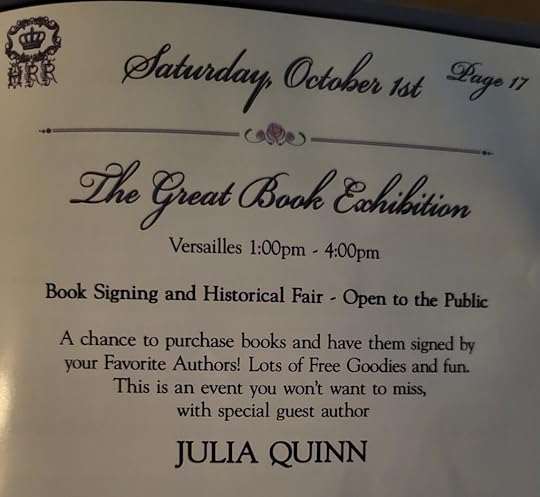 Our Special guest author for this event was Julia Quinn, the genius behind The Bridgerton Books which is now a Netflix show. I stood in line patiently to meet her and I did indeed meet her, she was very lovely, and signed a bookmark for me as she was sold out of books by the time I got to her. I can admit I felt weird about admitting I’d never read the books or watched the show when she asked but she was respectful of my answer. It was a cool experience.
