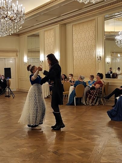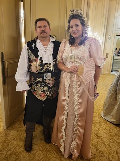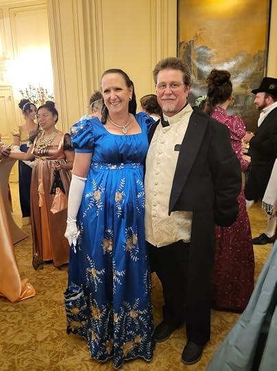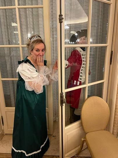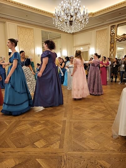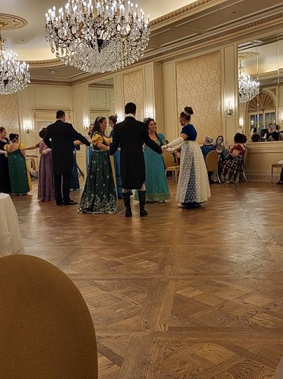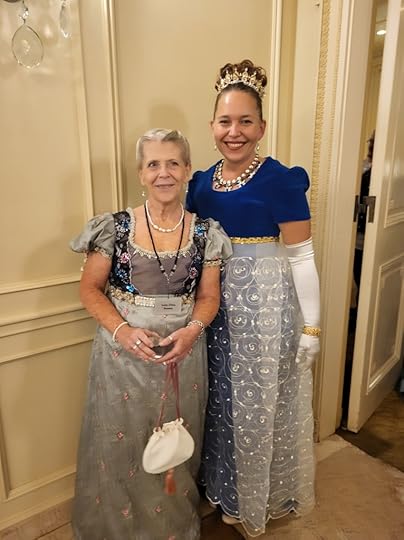 Remember when I said I needed a crown? I did, and I got to wear that beauty with my blue “Bridgerton” style gown to the ball. I took so many pictures that night. It was magical. I danced and can unanimously agree I was god awful at it. Tried my best it was a NOOOOOOO. And twerking in a ballgown wasn’t trendy, lol. There was a wonderful lady giving instructions and the music was beautiful. Everyone looked amazing in their finery, laughing dancing, and taking all the photos and videos we could to memorialize the moment. It was amazing, and if you ever have the chance to attend a ball, do it. Go all out, and be swept away in the experience.
