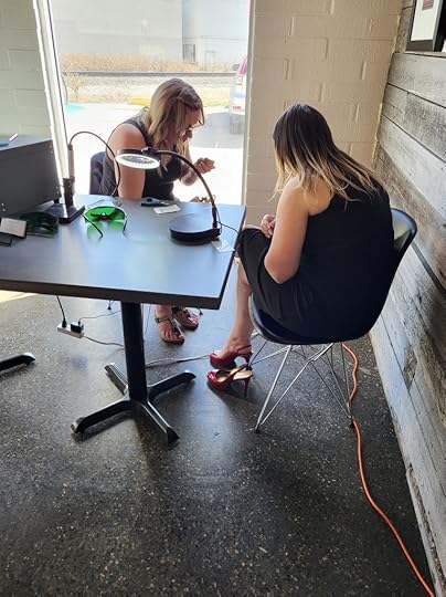 Steph is doing her thing, giving Katie a beautiful anklet.