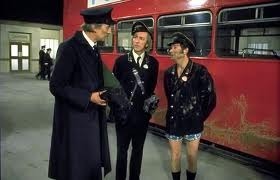 Stan’s in the soup after a to-do while driving the Number 49. Distracted by a busty dolly-bird at a zebra crossing he loses control of the bus, sending it swerving off the road and into a canal, resulting in the fatal injuries of several passengers. Olive loses her glasses, with hilarious consequences – hubby Arthur calls her a “fat, ugly, stupid, blind cow.” Meanwhile, Jacko is put on the Sex Offenders Register following an incident with a schoolgirl on the top deck. And things get hairy down at the depot when a rumour is reported by the Daily Express that Adolf Hitler is still alive. Local “nutcase” Nobby ‘Gertcha’ Snodgrass (Arthur Mullard) spots Inspector ‘Blakey’ Blake and, mistaking him for the Führer, hacks him to death with a meat cleaver before he’s got time to scarper.
