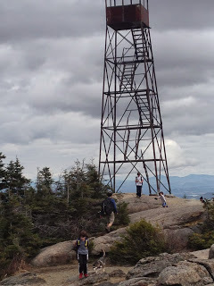 As for Hurricane, it's a pretty big mountain, and when we started out around noon, I felt ambivalent about ascending. What was wrong with a long walk in the woods with Stella and the kids? I had no need to actually go to the top of a peak. It was overcast, and there was no view. But as we hiked, and especially as we neared the summit, some internal chemistry shifted, and I was overcome with the desire to touch the fire tower at the top.
