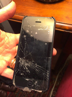-While talking to his violin teacher about how to manage his quitting so he feels good about his experience, I hooked my iPhone on a kitchen drawer pull and it fell to the ground, the screen shattered, and the home button stopped working.