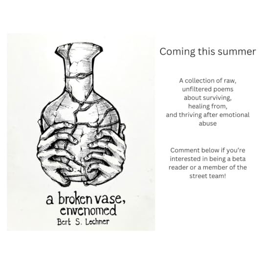 My next solo publication is a broken vase, envenomed: a short poetry collection about surviving, healing from, and thriving after emotional abuse, based on my own experiences as a survivor of intimate partner violence.