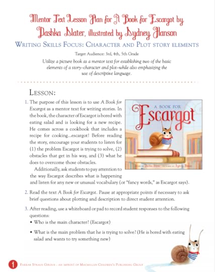 You can find the Persuasive Writing lesson plan for Escargot here and the Creative Writing lesson plan for A Book for Escargot here. And of course you can find the Escargot activity kit here.