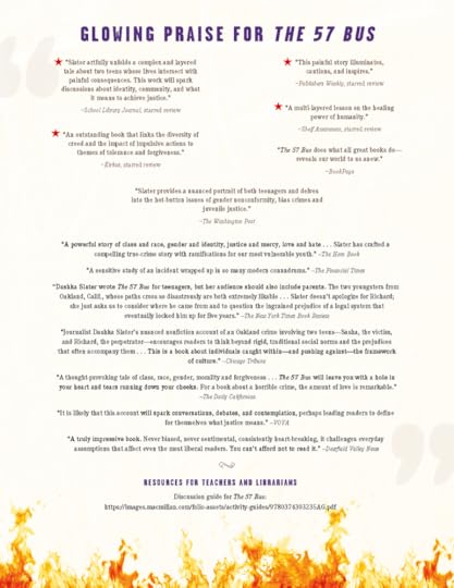 When I was at NCTE last month, I heard from a shocking number of teachers that their use of one or both of my nonfiction narratives, The 57 Bus and Accountable, was either being challenged by parents or second-guessed by administrators who were worried about being challenged by parents. These are books that were written in the hope that they could be used by teachers as a tool for having important conversations. I have heard from literally hundreds of teachers over the years who have used my book to do precisely that. What they tell me is that the resulting conversations were profound, moving, and eye-opening for all involved.