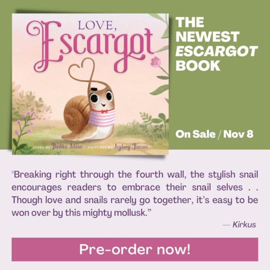 I can't tell you how excited I am that my favorite French snail is back for his third adventure. Sydney Hanson has outdone herself with the adorable illustrations and Escargot himself is thrilled to have the chance to receive more kisses from readers. You can pre-order it now wherever books are sold but I hope you'll order it from your local independent bookstore or from bookshop.org.