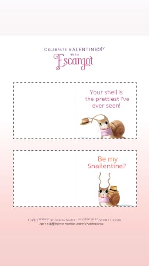 If you aren’t sure who your snail admirer is, allow me to introduce him. His name is Escargot and (with a tiny bit of assistance from me), he has written three books: Escargot, A Book for Escargot and his exciting new Snailentine adventure, Love, Escargot.