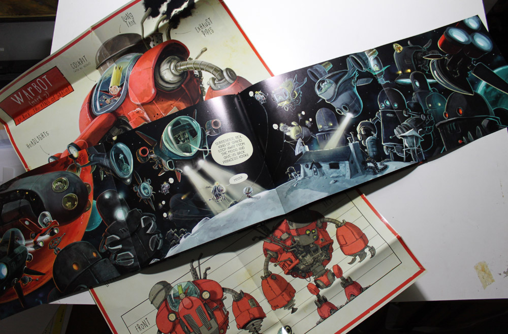 7. If you live in the UK, and you buy the hardback, you get this whopping poster. It's 56cm x 81cm. And it's got a Warbot on it. If you ask me, it's almost worth buying the book just for the poster, but then I am biased. I've got mine on the wall above my desk, and it looks fab. I ironed it to get rid of the folds.