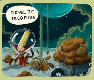 8. 'Moog dung' is mentioned quite a few times. Rex lives on a moog farm. And you can't live on a moog farm without encountering moog dung. I live in the countryisde and I could frequently smell aromas similar to moog dung whilst colouring-in this book. It's all part of the moog experience....