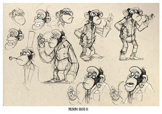 I worked a few days each week during the first half of 2008, sometimes at home, sometimes at Aardman's Bristol studio, sketching and working on character designs. For most of this time, there were two character designers, me and a wonderful french artist called Zebe. Here's some early stuff...