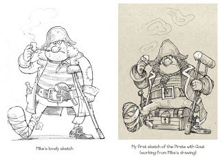 And then today I had some very good news. 'The Pirates Next Door' (Templar Publishing) has been short-listed for the Roald Dahl Funny Prize. Hoorah! Or, as an ex-pirate should say 'Oooo-ARR!!' It's now going to be judged by lots of children and a judging panel, headed by one of my favourite children's authors, Michael Rosen. Funnily enough, Rosie has made me read 'We're Going on a Bear Hunt' every morning this week. She must've known something that I didn't.....