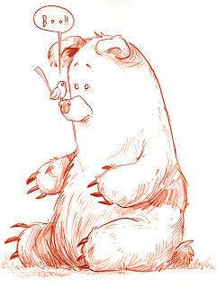 But for now... Until I write an update on 'The King of Space', here's a bear that I doodled at Amsterdam airport, on my way home from the Czech Republic.