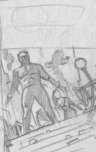 Bocetos y lápiz final para la portada de la serie Fear itself.
