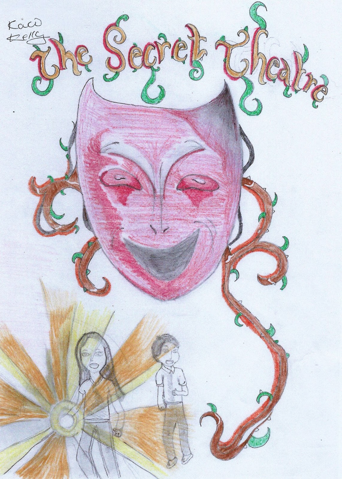Here's a brilliant drawing by Kaci at Swindon Village Primary School, inspired by my book The Secret Theatre. It's one of my first books, which I wrote when Kaci was about 2 years old...