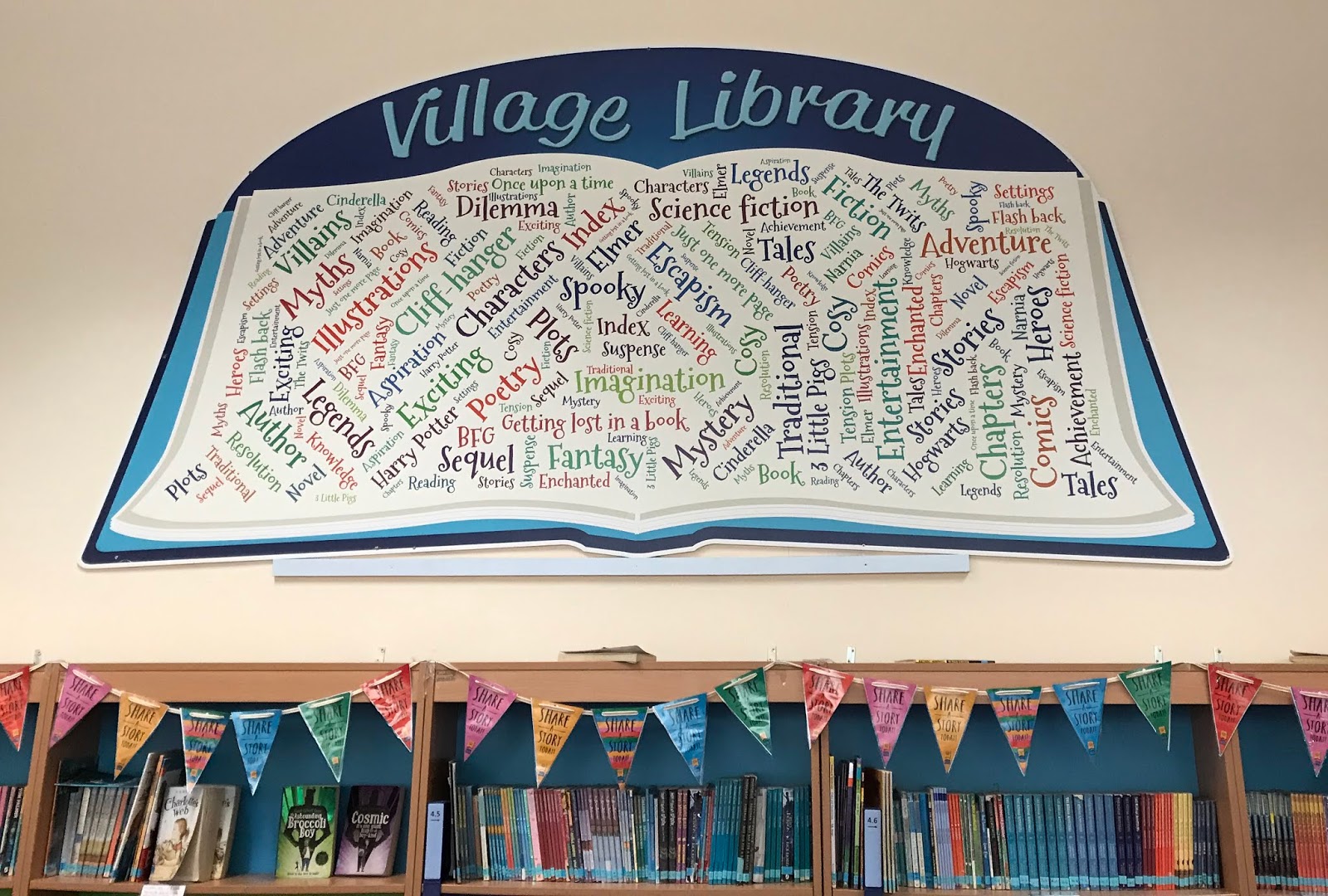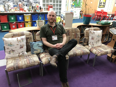It was my first visit to Village Primary. I was made to feel very welcome and thoroughly enjoyed working with the large KS2 and KS1 audiences. They were impeccably behaved, joining in really well to help bring my books to life and asking some great questions. It was lovely to chat with lots of the children at the book signing the next day, which took place in Village's fantastic library space. It's a large open area in the heart of the school, with brilliant, fun displays and unique furniture (see the photos below). Ms Houghton and her team have clearly put a lot of effort and heart into it, which was wonderful to see. I hope this is the first of many visits to Village Primary!