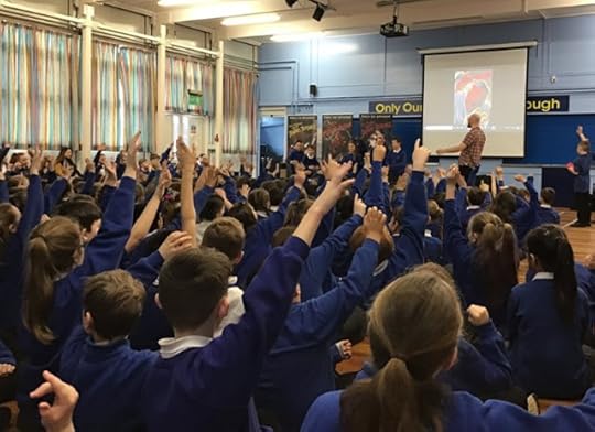 This was only my 3rd visit to St Michael’s, but I have known the headteacher, Mrs Barratt, just as long as Mrs Garlick – Mrs Barratt first invited me to her old school, Castleton, 9 years ago. Now she makes me feel very welcome at St Michael’s. Mrs Barratt has fostered such a lovely environment at St Michael’s. During my visit this week, the staff and children were all, without exception, so polite and friendly. I couldn’t have been better looked after and my presentations with KS2 and KS1 were a complete joy. The children’s enthusiasm was infectious and created a really warm buzz and those who came up to help me were brilliant actors! At the book signing the following day, every child who bought a book said ‘please’ and ‘thank you’ in a completely natural way – amazing!