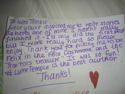 During my visit to Macaulay Primary in Grimsby (one of my favourite schools!) I got a year 6 girl to come up to the front and play Felix when we acted out Mutating Mansion. After this experience, the girl was inspired to write a diary entry in character as Felix, being trapped by her evil head teacher, Mr Foxsworth.