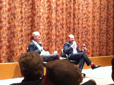 I recently saw Martin Amis in conversation with Matthew Weiner (the creator of Mad Men) as part of the Writers Bloc series. Not sure I quite understand the reasoning behind the pairing, but I'm a huge Amis fan (Money is one of my all time favorite books) and I managed to get yet another mediocre photo of a writer out of it (heads in the foreground are becoming my signature style).