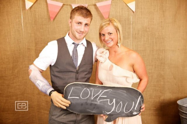 Some of these photographs have "Tim Dodd" stamped on the front. Tim Dodd is an Iowa photographer and childhood friend of Taylor Morris, 23 years old in May 2012 when a bomb blast in Afghanistan made Taylor a quadruple amputee. Taylor's girlfriend and later wife, Danielle Kelly, were together since high school.