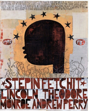 First, I did a larger piece about the actor Lincoln Theodore Monroe Andrew Perry also known as Stepin Fetchit - A Brief History of Stepin Fetchit 24x30 mixed media on 1/4" hardboard.