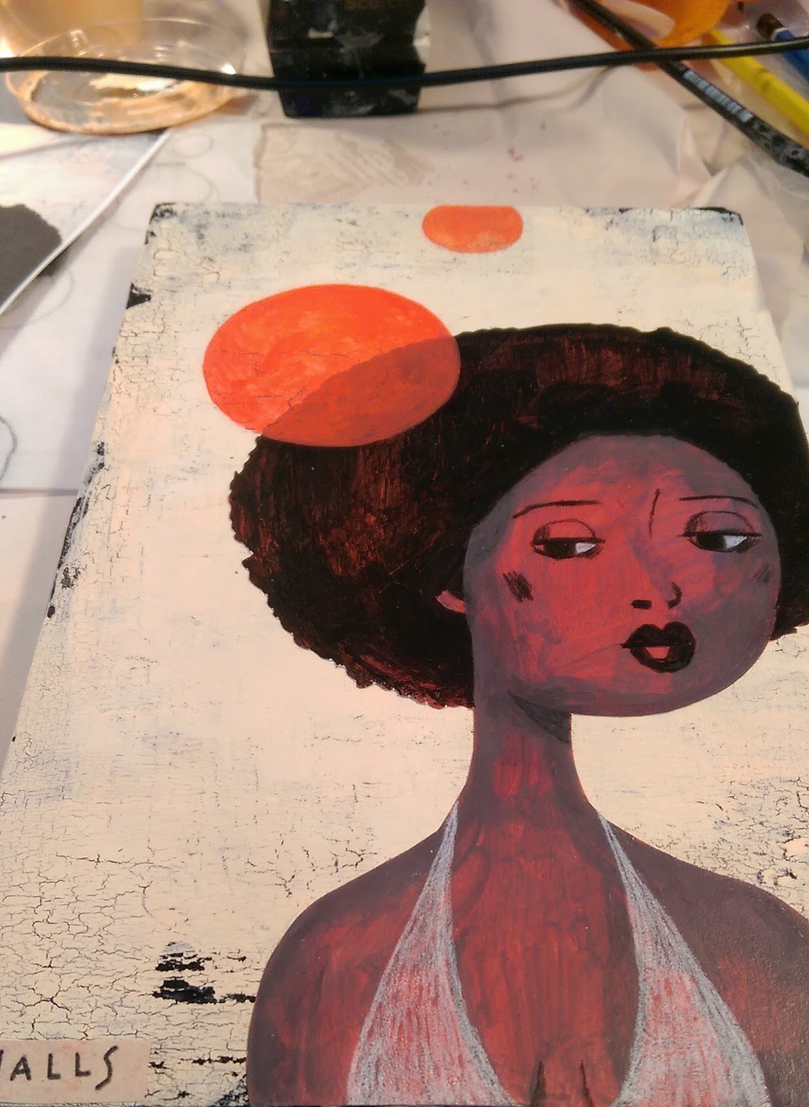 Afro Psyche #1 is 6x9" (slightly larger than my usual 6x6" pieces) mixed media on 1/2" plywood.Again, I'll be sending out updates every week, hopefully on Friday but if not before the weekend is over. If you know of anyone interested please send them this way.