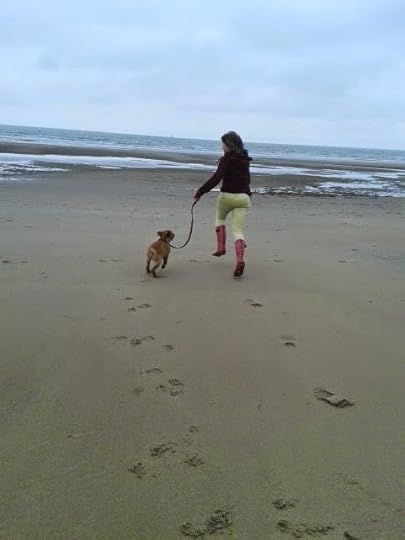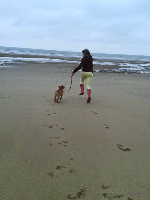 Ze was enthousiast over het rennen op het 'harde' strand, werd bijna onder de voet gelopen door een grote boxer (of iets dergelijks), was bang van de golven en ook van een minihondje (geen idee wat voor ras) en van driewielers moet ze precies ook niet weten. Door de hondentraining trekt ze ook niet meer aan de lijn en dat wandelt voor ons ook een stuk leuker.