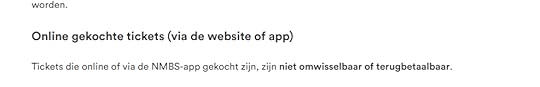 Ik heb dus een formulier ingevuld bij de klantendienst (ook een heel gedoe), en na nog wat klikken en zoeken bleek er toch een terugbetalingssysteem te zijn, mits inloggen met mijn account. Daar kon ik wel terugbetaling vragen van mijn ticket naar Herentals, maar niet van het ticket terug naar huis. Want die trein had natuurlijk geen vertraging!
