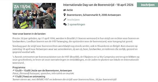 Wie de boeren structureel wil ondersteunen door op te komen voor een ander landbouwmodel kan op 18 april terecht in Antwerpen, op de internationale Dag van de Boerenstrijd.