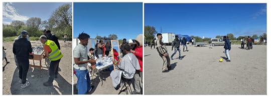 Op het terrein zijn er nog andere organisaties actief, kappers, een medische post, warme maaltijden. Een kickertafel en een bal zorgen voor enig vertier. De bestelwagen van MRS brengt schoenen, slaapzakken en tenten voor degene die er nood aan hebben.