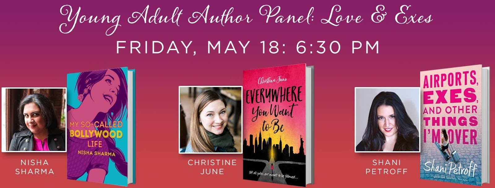 Here's the FB invite: click here for Shani's PA event!On Friday, I'll be at Hooray for Books! in Alexandria, VA with Nisha Sharma and Christina June!!