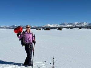 Skiing was arduous, as this is a natural wilderness without groomed tracks. Our guide broke trail for us. I volunteered to create the grooves for our skis and took the lead but was winded after a few minutes, feeling the elevation (about 8,000 feet) and the effort of compressing the powdery snow.
