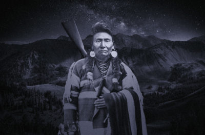 An American Indian man on horseback stood outlined against a steely sky past midday on 05 October 1877. Winter was already settling into the prairies of what would soon become the state of Montana.