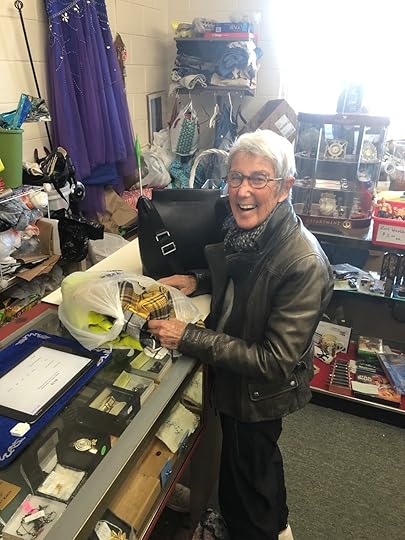 “We’ve got to go to the thrift shop in Amherst, “P said excitedly. “They have such great quality stuff. You will love it. We just need to find someone with a car to take us there.”