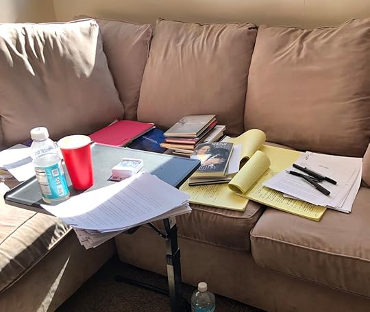 So, I’m reading some of the many poetry books I’ve brought with me for inspiration. I stare at the notes and images, phrases, I’ve scrawled on a legal pad next to me as I read. Usually that immediately sets me up to begin writing— some thought or word triggers the idea for a poem and my pen begins to move.