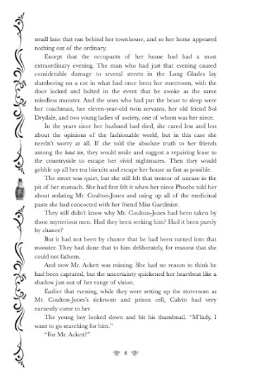 One appears in the main chapters and includes small illustrations of a slice of lemon cake and a treacle bun—symbols of Lady Wynwood’s young twin servants from the rookeries, whose role expands significantly in this volume.