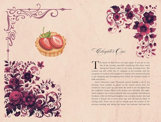 The floral elements are inspired by a Regency-era design, but each chapter also includes a different image, something that reflects a moment, a tension, or a turning point ahead.