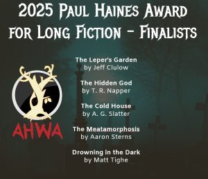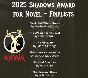 The shortlists for the Australasian Shadows Awards 2025 are out and I’m delighted to report that The Cold House is a finalist for the Paul Haines Award for Long Fiction and The Crimson Road is a finalist for the Shadows Award for Novels!