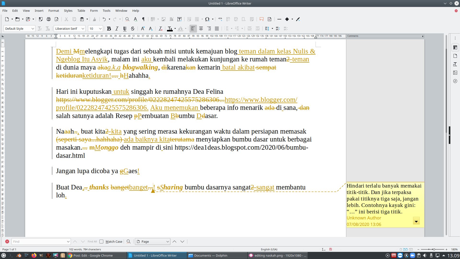 __________________________Pertanyaanku: awalnya postingan ini ditujukan untuk tema editing tulisan teman, lalu kenapa berubah jadi tutorial mengedit ya?