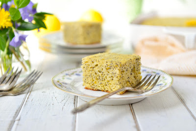 Spring is finally here! I just want to soak up each and every moment of sunshine we have, as it's been a particularly dark and rainy last couple of months. This healthy gluten-free lemon poppy seed cake will surely brighten any day! Serve it for Easter brunch or as part of a Mother's day breakfast. It's not particularly sweet, but definitely bursting with lemon flavor. It's quite easy to make and free of many of the common allergens, except eggs. The lemon-honey glaze on top seals in moisture and adds even more lemony flavor. I think you and your family will enjoy it. My children just love this cake!