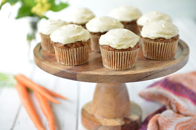 Yay for gluten-free carrot cake muffins! I call these healthy little treats muffins, but once frosted they sure seem like cupcakes to me. They are packed full of carrot-goodness, as well as being very moist and light, even without the eggs. What a perfect treat for Mother's day or a Springtime gathering!