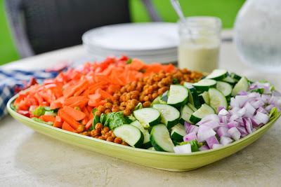If you have children and are in need of some inspiration on getting them to love their veggies, then this kid-friendly recipe is for you. I'm visiting my family in Wisconsin now. My children love to play with my brother's four children who are all about the same ages as mine. Now, my children love their vegetables, but my brother's children are not the same. They are a little more hesitant to have a gigantic pile of raw vegetables fill their plates. My oldest niece is the most adventuresome when it comes to new vegetables. She always asks what I'm eating and wants to try it. The other day she tasted purple daikon radish for the first time and loved it, as well as sliced raw kohlrabi. So when I introduced her to this salad, she literally could not stop eating it. Even before dinner was served she was stealing the lettuce and vegetables off the platter!